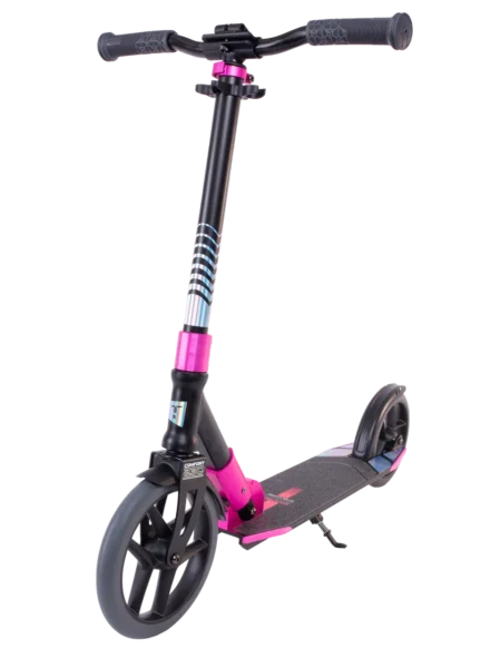 Городской складной самокат Comfort 230 Evolution — обновлённая версия линейки Comfort с передним колесом 230 мм. Мягкие резиновые грипсы дополнены антилюфтовым зажимом на руле, исключающим скрип и вибрацию.