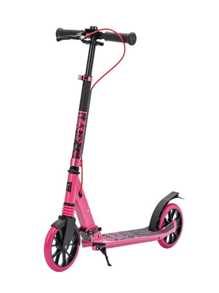 Перед вами — младший брат City Scooter, но со своими сильными сторонами. Передний амортизатор смягчает толчки на ямах и стыках, так что ездить заметно приятнее. Колёса 180 мм с подшипниками ABEC 7 уверенно чувствуют себя на ровном асфальте. Сзади — привычный тормоз-крыло с брызговиком и красным катафотом для безопасности в сумерках.